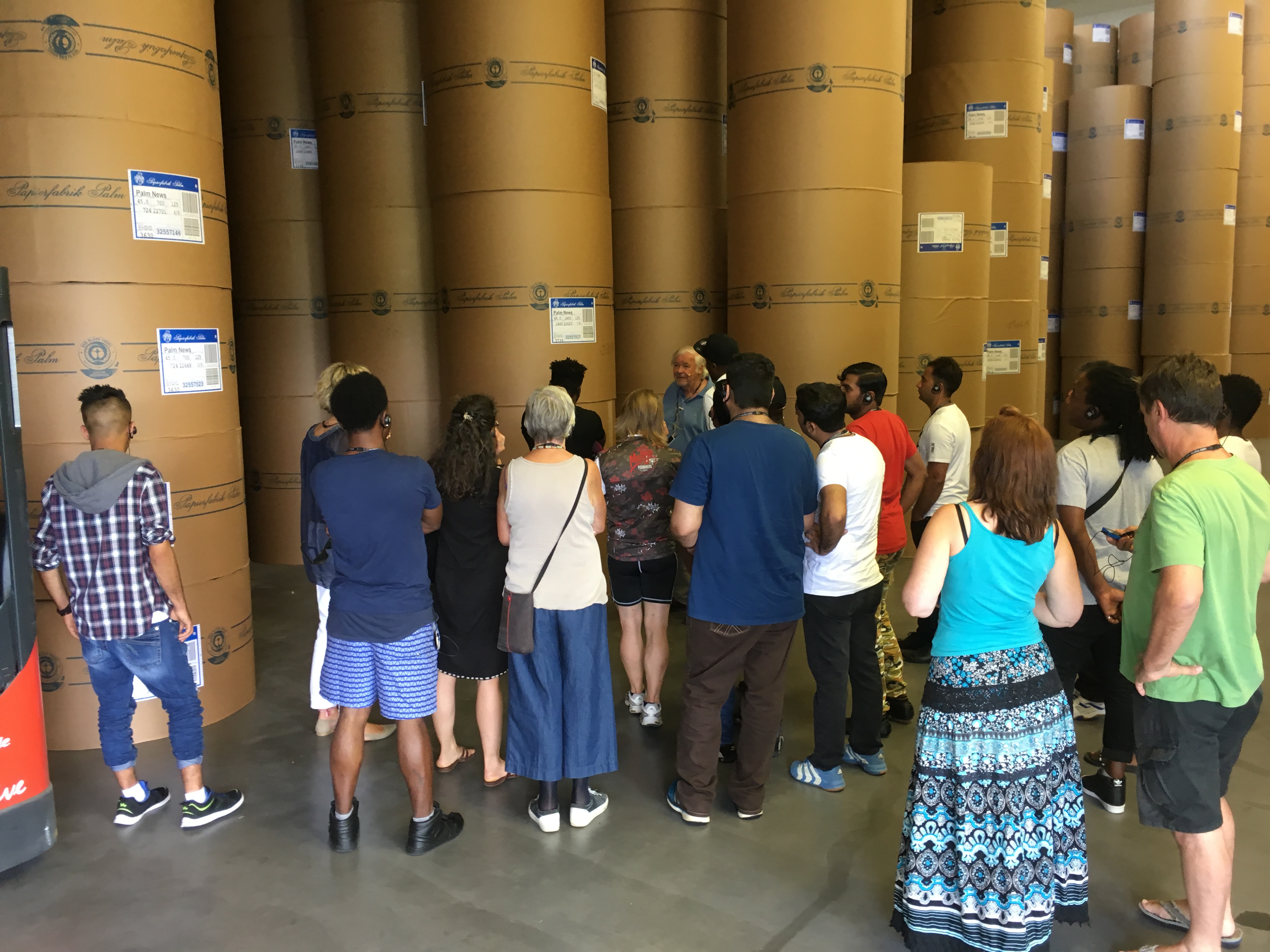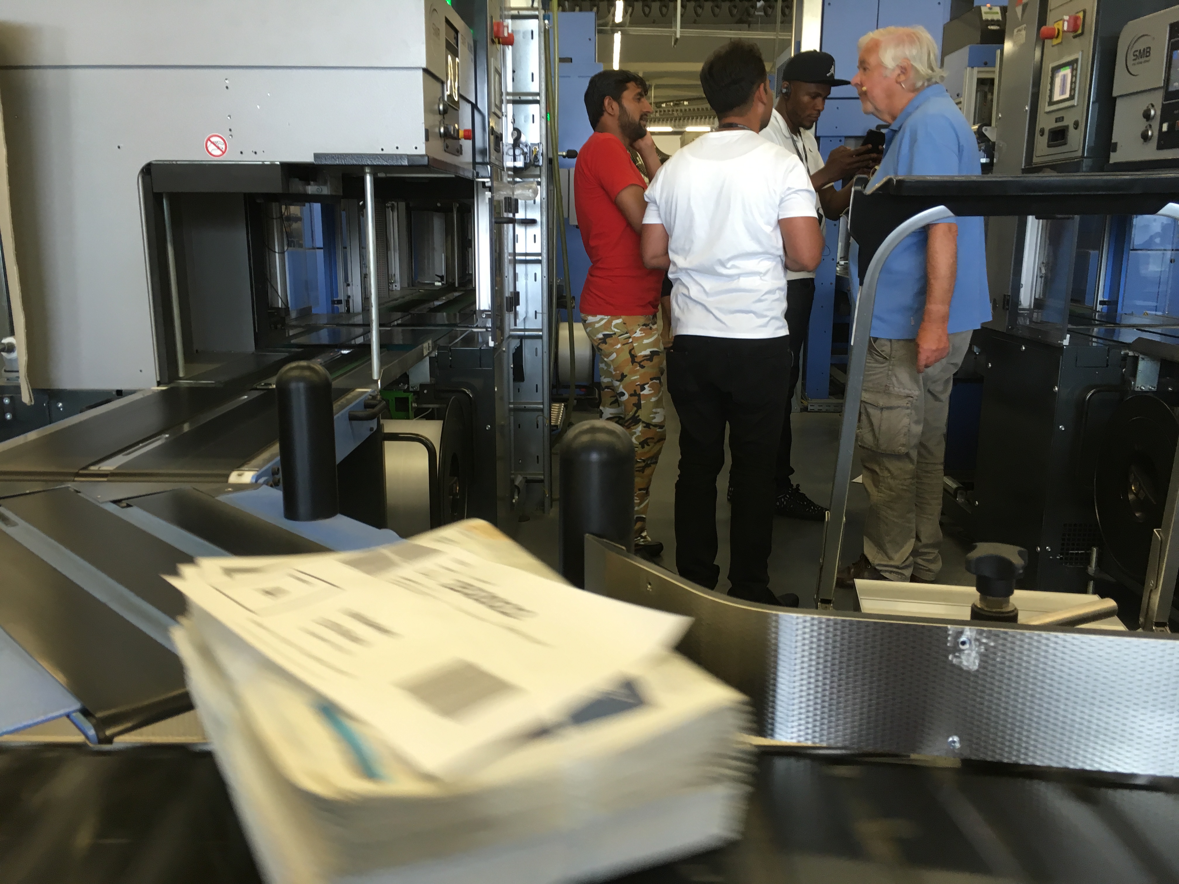 Mit 500 km/h durch die Walzen – Asylbewerber zu Besuch im Druckzentrum