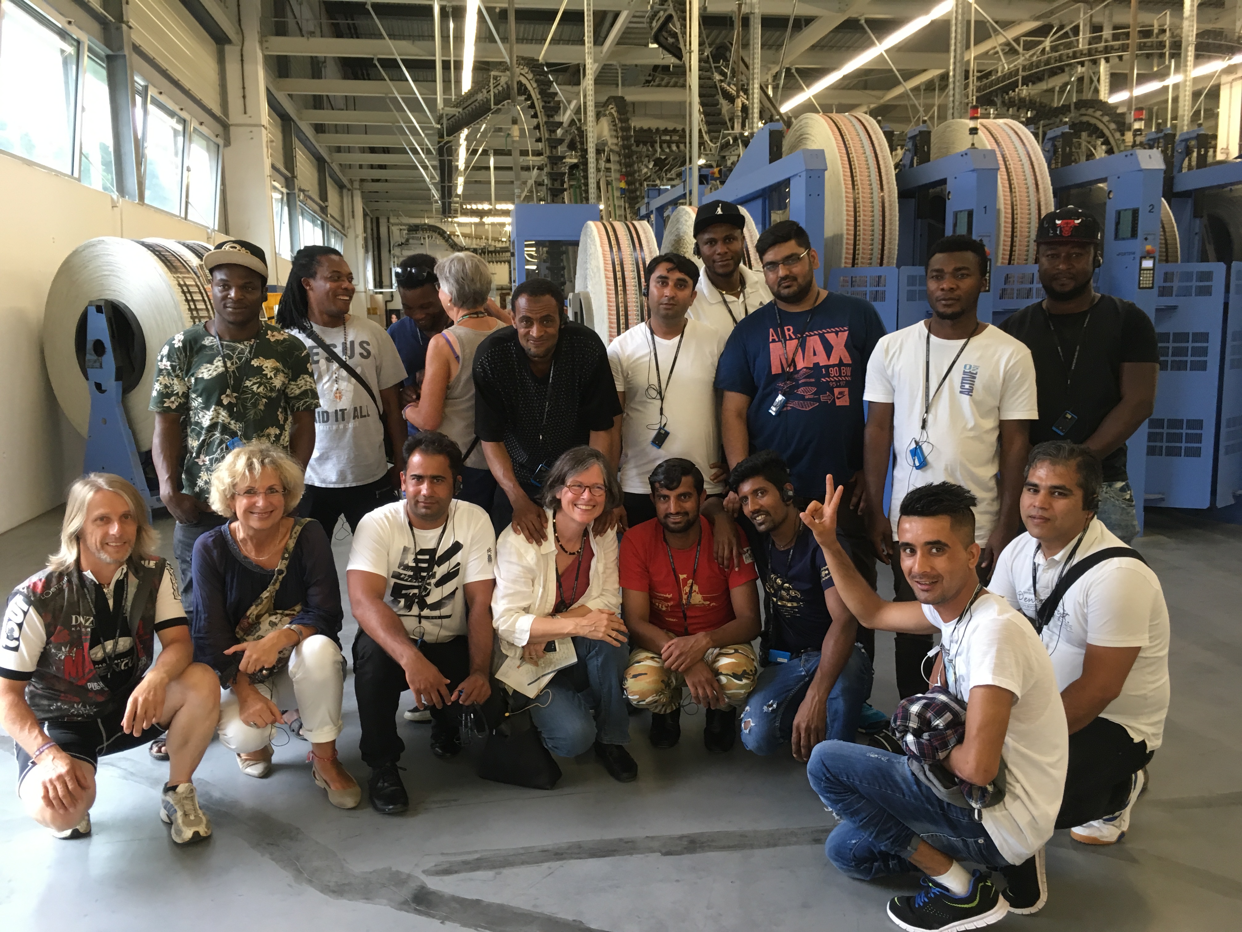 Nur ein Wermutstropfen blieb bei aller Begeisterung über das Gesehene am Ende. Mit traurigem Blick auf die fleißigen Zeitungspacker erklärte einer: „Drucktechniker werden gebraucht, wie wir gehört haben. Und auch sonst gibt es hier so viel zu tun. Wenn wir doch nur auch arbeiten dürften!“ Arbeitsgenehmigungen aber erhalten nur Anerkannte.