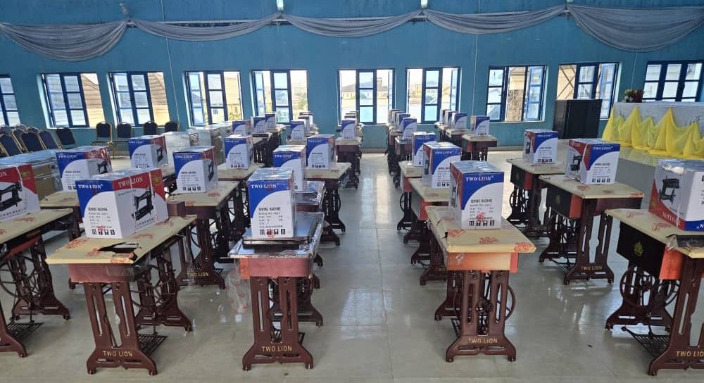 32 Nähmaschinen standen sorgfältig aufgebaut bereit, um später an die jungen Leute übergeben zu werden. Damit ist der Schritt von der Ausbildung zum „Empowerment“ vollzogen: Ihnen werden somit die Mittel an die Hand gegeben, mit dem Gelernten nun ihr Geld zu verdienen.